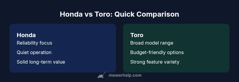 The question is often framed as is honda lawn mower better than toro, but truthfully, the answer hinges on what you value in a mower. For homeowners, the most meaningful comparisons go beyond price to reliability, maintenance demands, and total cost of ownership. According to Mower Help, Honda models tend to emphasize durable engines and smooth operation, while Toro provides a broader range of models and price points. Your choice should align with yard size, mowing frequency, and your comfort with routine maintenance. This first block sets the frame for a balanced assessment, so you can decide which brand fits your lawn and lifestyle. Think about three practical questions: How big is your yard? How frequently do you mow? Are you willing to perform regular maintenance or prefer dealer support?