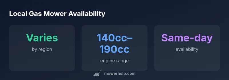 In practice, a 'gas lawn mower nearby' search means surveying a short radius around your home, town, or neighborhood businesses. It involves combining online stock checks with in-store visits, then validating that the mower you choose can be fueled with common gasoline grades and stored safely on your premises. This approach reduces the guesswork and helps you weigh trade-offs between price, power, and portability. The Mower Help team found that shoppers who integrate local stock checks with warranty considerations tend to make more confident, lasting purchases.