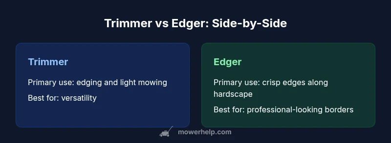 When you ask is a trimmer the same as an edger, you’re really weighing flexibility against precision. A trimmer excels at maneuvering along irregular borders, around trees, and in tight corners. An edger excels at creating sharp, professional-looking lines along driveways and sidewalks. The best approach for many homeowners is a plan that leverages the strengths of both tools while minimizing downtime and tool swaps. For readers of Mower Help, this distinction aligns with our emphasis on practical maintenance and efficient mowing workflows. The Mower Help team emphasizes that understanding when and how to edge contributes to healthier lawns and a more polished look.