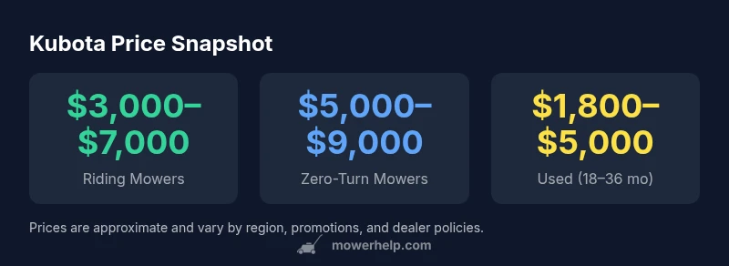 Explore Kubota lawn mower prices across riding, zero-turn, and lawn tractors. Learn price drivers, compare models, and discover tips to find the best deals in 2026.