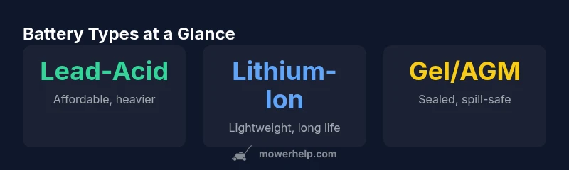 For homeowners shopping for lawn mower batteries for sale, knowing the chemistry behind each option helps you predict performance, safety, and longevity. The two most common families are lead-acid variants (including sealed AGM) and lithium-ion cells. Lead-acid options are typically less expensive upfront and robust in cold weather, but they are heavier and have shorter cycle life. Lithium-ion packs offer higher energy density, longer lifespan in some conditions, and lighter weight, but at a higher upfront cost. Mower Help's analysis in 2026 shows that choice often hinges on usage patterns, mower type, and charging habits. If you mow frequently in cold climates, a robust cold start capability can be decisive. Always verify that the battery you buy is compatible with your mower voltage rating and connector layout before purchasing.
