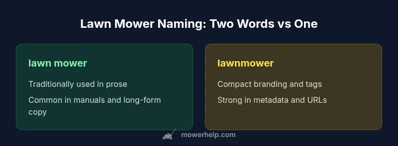 Explore the naming difference between lawn mower and lawnmower, its impact on SEO and branding, and practical steps for standardizing terminology across manuals, product pages, and marketing materials. A data-informed guide by Mower Help for homeowners and DIY enthusiasts in 2026.