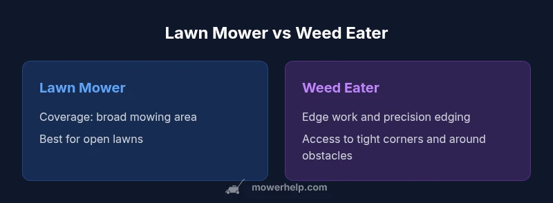 Between a lawn mower and a weed eater, the best choice depends on yard size, terrain, and maintenance preferences. A lawn mower quickly handles broad grassy areas, while a weed eater excels at edging and tight spots. For many homes, a two-tool setup delivers the fastest, cleanest result: mower for bulk mowing and weed eater for borders and rough edges. Also consider noise, storage, and fuel when deciding.
