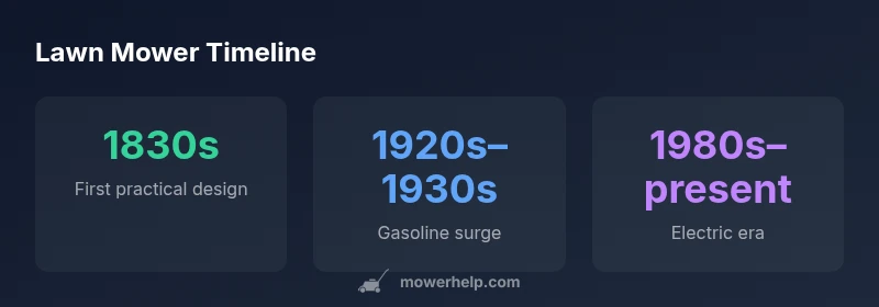 The first practical lawn mower appeared in the 1830s, thanks to Edwin Budding in England. Mass production of gasoline mowers followed in the 1920s–1930s, expanding access. Electric and cordless models rose later in the late 20th and early 21st centuries. For homeowners today, understanding this timeline helps select a mower that matches yard size, maintenance, and energy costs. According to Mower Help, history informs better buying decisions.