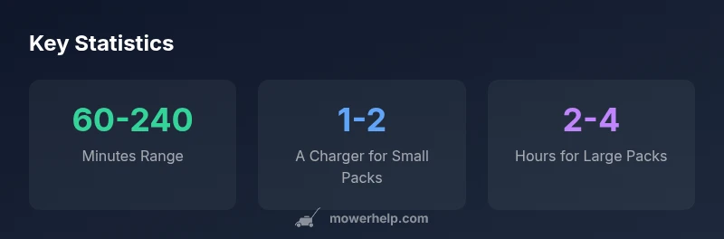 Typically, a lawn mower battery reaches a full charge in about 60 to 240 minutes, depending on battery capacity and charger amperage. Smaller 18-24V packs with a 1-2A charger finish closer to 60-120 minutes, while larger 40-60V packs with higher-amp chargers may need 2-4 hours. Always refer to your battery and charger labels for exact times.