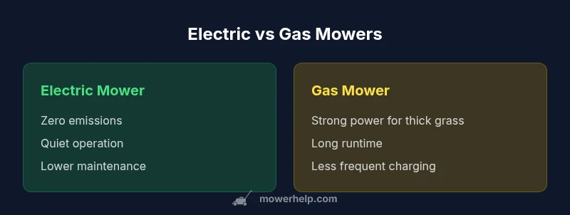 Deciding between an electric and a gas lawn mower starts with understanding how you use your mower, where you live, and what you value most in a tool. According to Mower Help Team, the core decision factors are yard size, terrain, storage space, maintenance tolerance, and willingness to manage charging or refueling. In practice, most homeowners want a balance of reliability, cost, and convenience. This section maps the decision framework you can apply before you shop, including three practical questions to guide your choice. We will compare upfront costs, ongoing expenses, performance on typical lawns, and environmental impact so you can choose with confidence.