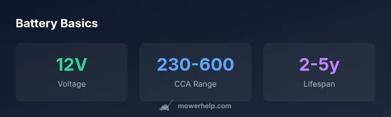 The 12-volt riding lawn mower battery is the power source that starts your mower and supplies electricity to lights, sensors, and electric PTO if equipped. In most riding mowers, this is a sealed lead-acid (SLA) unit, often of AGM variety, designed to handle outdoor conditions and vibrations. While the device is small compared to car batteries, it must deliver adequate cold-cranking amps (CCA) to ensure a reliable start, even in cold mornings. The 12-volt designation refers to its nominal voltage; capacity and CCA determine how long the engine will start reliably and how well accessories run between charges. For homeowners, understanding these basics helps you avoid choosing the wrong battery and reduces field service trips.