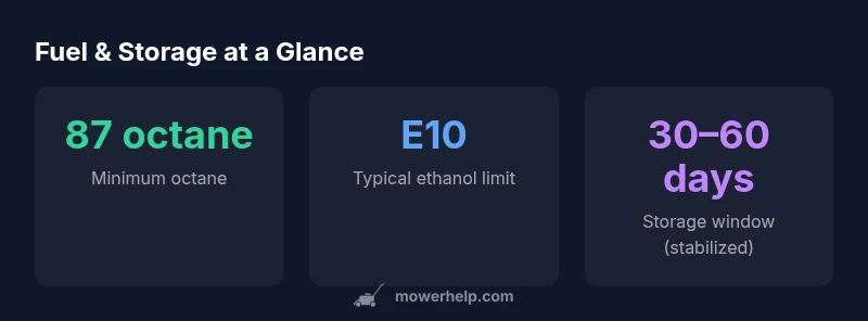 According to Mower Help, most Briggs & Stratton lawn mower engines are designed to run on unleaded gasoline with ethanol up to 10% (E10). The exact octane requirement varies by model, but a minimum of 87 octane is commonly recommended. Running on high-ethanol blends or gasoline that has aged can cause starting trouble, rough running, and carburetor deposits. The term 'briggs & stratton lawn mower gas' encompasses both the fuel and the care you give it: fresh gas, proper storage, and timely maintenance. For DIY enthusiasts, this means checking the owner's manual for model-specific guidance and aligning your fuel source with that guidance. Using old or contaminated fuel is a leading cause of poor starting performance and reduced engine life. Always label fuel containers and store them in a cool, ventilated area away from heat sources.