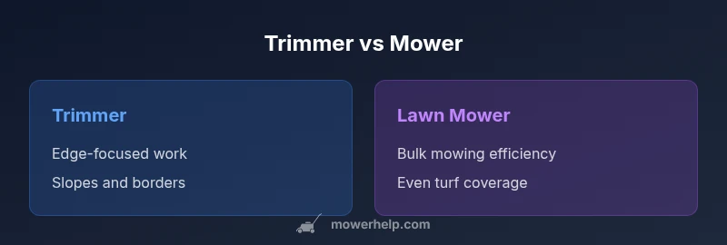 Homeowners often ask whether a string trimmer can replace a conventional lawn mower for routine mowing. According to Mower Help, the short answer is: it depends on yard size, terrain, and desired finish. This article compares the two tools so you can decide when can you use trimmer instead of lawn mower is feasible and when a mower remains essential. The keyword can you use trimmer instead of lawn mower appears here to anchor the topic for searchers and readers alike. For small, flat patches with tight borders, a trimmer can be effective; for large, uniform lawns, a mower is typically more efficient. The Mower Help team emphasizes that context matters more than tool capability alone, so assessing your yard is the first step.