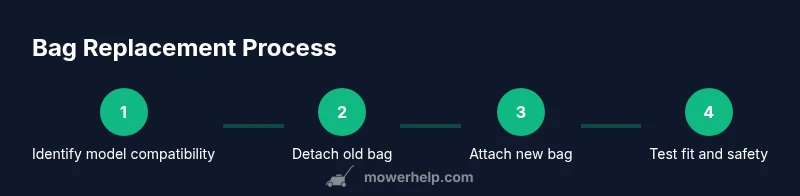 According to Mower Help, you can safely replace a Craftsman lawn mower bag by verifying compatibility, gathering the right tools, and following a clean, step-by-step process. This quick answer outlines the goal, required materials, and a high-level workflow. You’ll learn how to inspect the bag, attach the new one securely, and perform post-installation checks. Plan for 30–45 minutes and always disconnect the spark plug before starting.