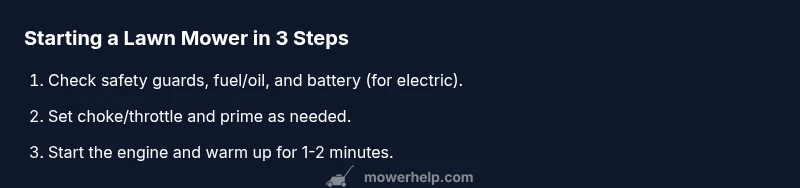 Starting a lawn mower safely means getting it running reliably without compromising your safety or the machine. Whether you’re tackling a weekend lawn or a large yard, the goal is a smooth, controlled startup that allows you to begin mowing without interruptions. According to Mower Help, starting a mower safely begins with understanding your model and performing a quick pre-start check. In this section, we’ll outline the general objectives and prepare you for model-specific steps to follow in the next sections. You’ll learn how to identify your mower type, which checks are universal, and what differences matter for gas vs electric/battery units. A clear plan reduces frustration and helps you avoid common mistakes.