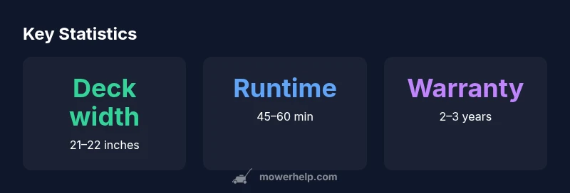 Most variants sit around a mid-sized deck, typically about 21–22 inches. This width provides good balance between maneuverability and cutting efficiency for standard residential lots.