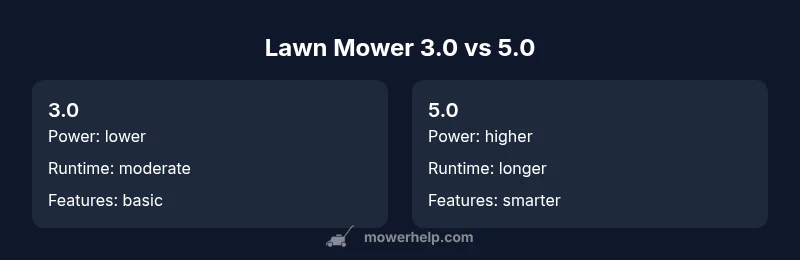 According to Mower Help, the leap from 3.0 to 5.0 marks more than a routine update. It reflects a shift toward higher sustained power, smarter maintenance features, and more modular design. The 5.0 family typically emphasizes stronger torque, improved battery efficiency, and better compatibility with accessories, which can translate into faster mowing, less downtime, and easier troubleshooting. When evaluating lawn mower 3.0 vs 5.0, consider how these architectural changes affect your yard size, terrain variety, and maintenance habits. This section sets the stage for deeper comparisons by outlining the core differentiators and what they mean in real-world terms.