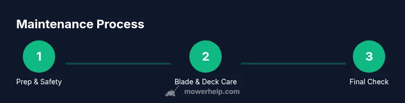 A well-maintained 32-inch deck mower requires a repeatable routine: clean the deck, inspect and sharpen or replace blades, check and change oil, replace air filters, inspect the belt and pulleys, and test function after service. Start by ensuring the unit is cool and disconnected. Remove debris from the underside and wash away built-up grime. Then remove the blade and inspect it for chips or cracks; sharpen or replace as needed. Check oil level and quality, add lubricants to moving joints, and verify tire pressure. Finally, reassemble, run the engine briefly, and test cutting in a small patch to confirm even height across the deck.