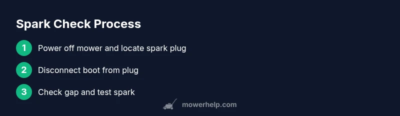 Check for spark to diagnose starting problems by inspecting the plug, gaps, and ignition wiring. This quick answer outlines how to safely test ignition, identify fouling or wear, and decide whether cleaning, replacing, or further diagnostics are needed for your lawn mower. We cover safety, tools, gap setting, and when to seek professional help.