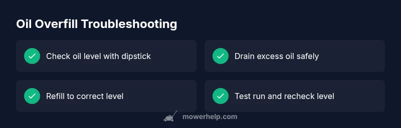 Overfilling a lawn mower with oil is the most likely cause of smoking, poor performance, and potential engine damage. The quick fix is to safely drain the excess oil to the correct level, then restart and test. If you notice leaks, unusual noises, or oil in the air filter or fuel, stop and seek further guidance.