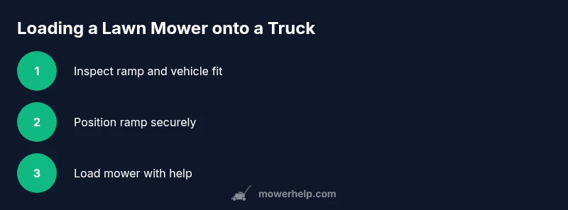 According to Mower Help, you can safely load a lawn mower into a truck by using a properly rated ramp and secure restraints. Verify ramp weight rating and truck bed dimensions, recruit a helper, and use wheel chocks and ratchet straps. Load slowly, test stability, then recheck straps before driving.