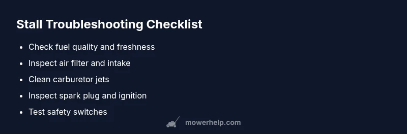 Diagnose and fix common lawn mower stalling issues with a concise, safety-first guide. Learn tests for fuel, air, ignition, and safety switches to restore performance.