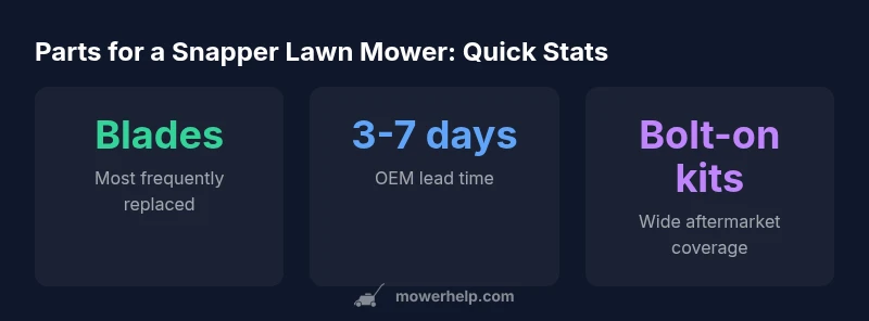 According to Mower Help, understanding parts for a snapper lawn mower is essential for reliable performance and safe operation. While Snapper models share common design cues, the specific parts you need depend on the engine size, deck width, and recent service history. A practical approach is to start with a model number, locate its official parts catalog, and build a simple parts list before you shop. This primer will help you identify what wears out first and how to plan replacements without unnecessary downtime.