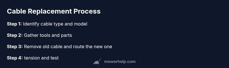 A replacement cable in a lawn mower refers to the flexible wire that connects control levers to the engine or blade mechanisms. The most common cables are throttle cables, which control engine speed, choke cables that manage starting behavior, and safety or kill cables that disengage the blade or shut off the engine. When these cables wear, stretch, or break, you notice delayed response, stiff movement, or no response at all from the control levers. For homeowners, replacing a faulty replacement cable for lawn mower is a practical repair that restores control, improves safety, and extends the life of the mower. According to Mower Help, understanding the function of each cable helps you pick the right replacement cable for lawn mower. Start by identifying whether you need throttle, choke, pull start, or safety switch cable. Different models use different end fittings, lengths, and routing paths, so confirm compatibility before ordering. If you feel unsure, consult the mower’s manual or a service representative before buying a part. A correctly matched cable will align with the pulleys, guides, and levers that control the cutting performance. With the right part, this repair can be performed quickly and safely in a home workshop. Mower Help’s guidance emphasizes accuracy in part selection to avoid misrouting or binding that could worsen the problem.