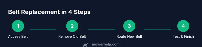 The replacement process follows a logical sequence: (1) prepare and secure the mower, (2) release tension and remove the old belt, (3) route the new belt according to the deck’s path, (4) check tension and pulley alignment, and (5) test the mower to confirm proper operation. This overview helps you plan your time and ensures you understand the flow before you begin. Remember that belt routing is critical; a misrouted belt will slip or fail quickly, negating the replacement effort.