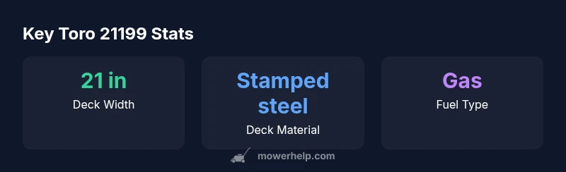 The Toro 21199 sits in the mid-range of Toro's lineup, designed for homeowners who want solid cutting performance without the premium price tag. In practice, this model emphasizes a balance of cut quality, ease of maintenance, and broad dealer support. According to Mower Help, this positioning helps it appeal to first-time gas mower owners and DIY enthusiasts who value predictable results and parts availability. The 21199 is commonly described as a push mower with optional enhancements found on higher trims, such as a self-propel option and mulching capabilities, depending on the configuration in your market. For yards of typical suburban dimensions, a mid-sized deck around the 21-inch class is often cited as a sweet spot between maneuverability and coverage speed. While not the lightest model in Toro's catalog, it aims to remain manageable for most users who navigate through tight corners, slope changes, and weekend maintenance sessions. In short, the 21199 targets practical, value-conscious buyers who want a straightforward mowing experience.