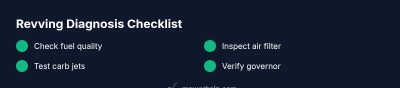 Revving up and down while mowing is a common, solvable symptom. The engine speed oscillates instead of staying steady, and you may notice the mower throttling higher when under load or changing blade engagement. According to Mower Help, most revving issues trace back to fuel or air delivery problems or a governor misread of engine load. The quick path to answers is to rule out the basics first: fuel quality, air intake, and simple mechanical snagging. If you ask, in plain terms, why is lawn mower revving up and down, you’ll often find the answer in a few straightforward checks rather than expensive parts. The Mower Help team found that many cases resolve after replacing stale fuel, cleaning or replacing the air filter, and ensuring the choke and idle settings are correct. Keep safety gear on and work in a well-ventilated area as you diagnose.