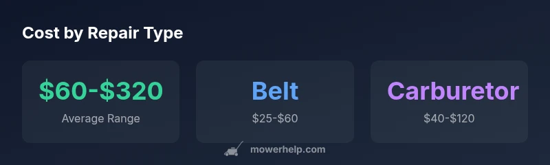 Average lawn mower repair cost typically ranges from about $60 to $320, depending on the repair type, parts, and labor. Most homeowners pay around $100 to $180 for common fixes like belt replacements, carburetor cleaning, or blade sharpening. More extensive work, such as motor or ignition repairs, can push costs toward the upper end.