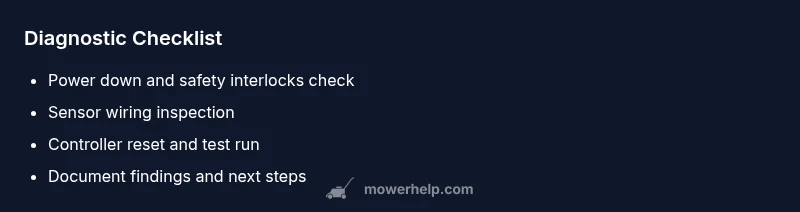 Always prioritize safety. If you notice burning smells, sparks, smoke, or shredding noises, stop immediately and call a professional. Electrical diagnostics, wiring harness work, and controller replacement require proper PPE and potentially a grounded work area. The cost of professional service varies by region and fault complexity; expect broad ranges for parts and labor depending on whether sensors, harnesses, or the control module are involved. If the fault persists after completing the diagnostic flow and the recommended fixes, a qualified mower technician should handle the repair to prevent further damage or safety risks.