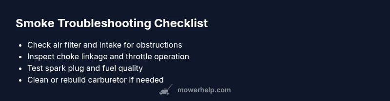 Immediate fix: A lawn mower is blowing black smoke most often due to an overly rich fuel mixture, a clogged air filter, or a failing carburetor. According to Mower Help, start by checking the air filter and spark plug, then inspect fuel lines and the carburetor. The Mower Help team found that addressing the simplest cause first usually restores power and reduces smoke.
