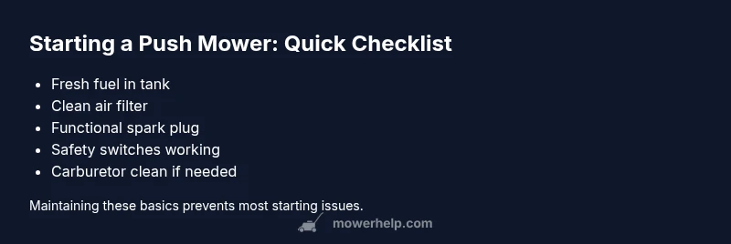 Learn fast, practical steps to diagnose why push mower won t start. This expert guide from Mower Help walks you through fuel, spark, and safety checks to get your mower running.