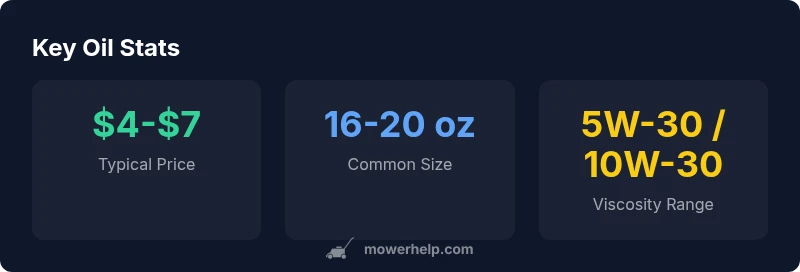Labels tell you what you’re buying and whether it will work with your mower. Always read the API service classification (for example, SL, SJ, or newer ratings) and cross-check your engine’s requirements. Look at viscosity (the first number, like 5W-30) and the pour point or temperature range; this helps you anticipate performance in your local climate. Be careful not to confuse two-stroke oils with four-stroke mower oil. If your mower requires a 4-stroke oil, Walmart’s shelves will label it accordingly. Some labels highlight synthetic-blend formulas, while others emphasize full synthetic. In practice, pick a product with a proven track record, a clear compatibility note, and a reputable brand reputation. When possible, compare multi-pack offers or larger containers that reduce per-ounce costs while keeping the correct viscosity. Mower Help’s guidance emphasizes avoiding off-brand or untested additives that promise dramatic improvements without evidence. Finally, hold onto the receipt for disposal instructions if the store offers used-oil recycling, and follow local regulations for container disposal and recycling.