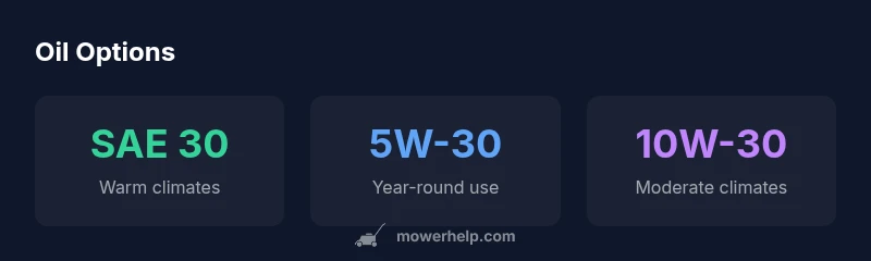 For practical planning, think of oil choices in three broad climate bands: warm (SAE 30), moderate to cool (5W-30 or 10W-30), and extreme cold conditions (check for a viscosity like 0W-20 only if recommended by the manual). This approach aligns with most mower specs and reduces guesswork when you buy oil. Always verify your model's exact requirements to maximize engine life.