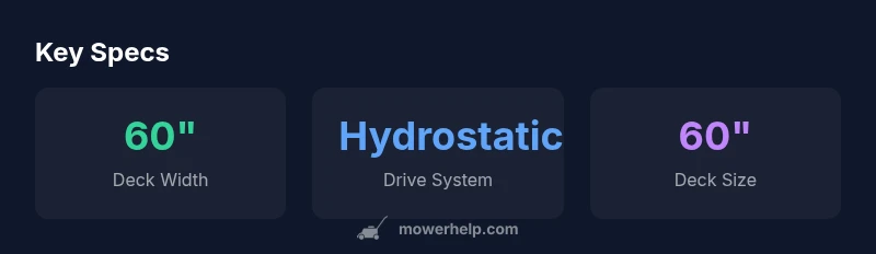 For large lawns, a 60-inch deck can cover more ground per pass. Always factor space and turning radius when deciding.