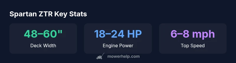 The spartan zero turn lawn mower delivers solid cutting performance and durability for mid-to-large lawns, supported by a reputation for straightforward maintenance. In this quick verdict, we compare its value and reliability against key rivals, outlining who benefits most from Spartan's design choices. According to Mower Help, this model emphasizes long-term ease of service and predictable cuts.